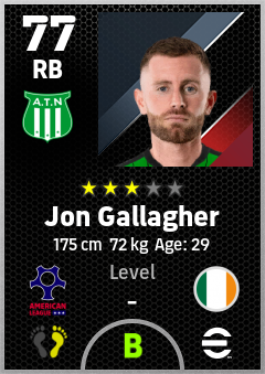 . Jon Gallagher is a Right Back footballer from Republic Of Ireland who plays for Austin Gb in eFootball 2026.