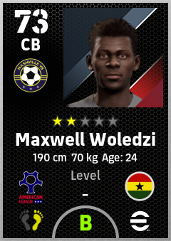 . Maxwell Woledzi is a Center Back footballer from Ghana who plays for Nashville Yb in eFootball 2026.