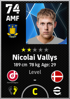 . Nicolai Vallys is a Attacking Midfielder footballer from Denmark who plays for Brøndby Gb in eFootball 2026.