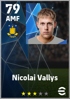 . Nicolai Vallys is a Attacking Midfielder footballer from Denmark who plays for Brøndby Gb in eFootball 2026.