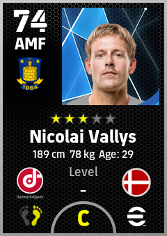 . Nicolai Vallys is a Attacking Midfielder footballer from Denmark who plays for Brøndby Gb in eFootball 2026.