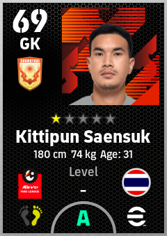 . Kittipun Saensuk is a Goalkeeper footballer from Thailand who plays for Sukhothai Fc in eFootball 2026.