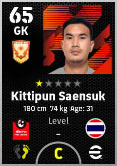 . Kittipun Saensuk is a Goalkeeper footballer from Thailand who plays for Sukhothai Fc in eFootball 2026.