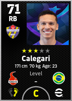 . Calegari is a Right Back footballer from Brazil who plays for Eyüpspor in eFootball 2026.
