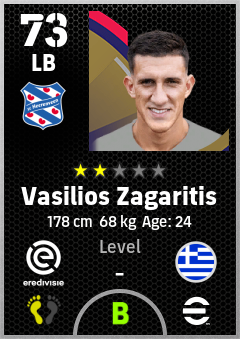 . Vasilios Zagaritis is a Left Back footballer from Greece who plays for Sc Heerenveen in eFootball 2026.