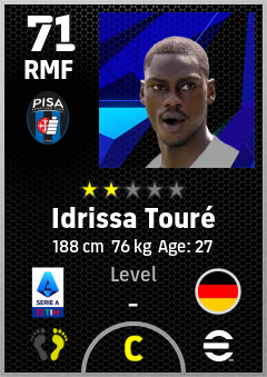 . Idrissa Touré is a Right Midfielder footballer from Germany who plays for Pisa Sporting Club in eFootball 2026.