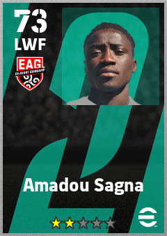 . Amadou Sagna is a Left Wing Forward footballer from Senegal who plays for En Avant Guingamp in eFootball 2026.