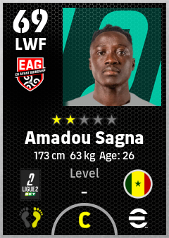 . Amadou Sagna is a Left Wing Forward footballer from Senegal who plays for En Avant Guingamp in eFootball 2026.