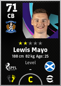 . Lewis Mayo is a Center Back footballer from Scotland who plays for Kilmarnock Fc in eFootball 2026.