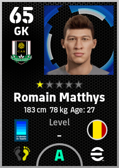 . Romain Matthys is a Goalkeeper footballer from Belgium who plays for Castellón Nb in eFootball 2026.