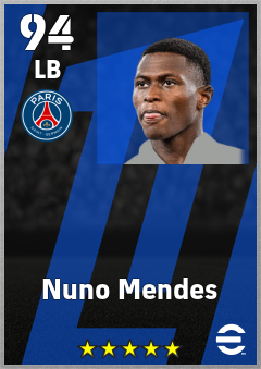 .Nuno Mendes is a Left Back footballer from Portugal who plays for Paris Saint-Germain in eFootball 2026.