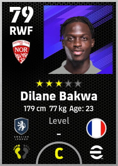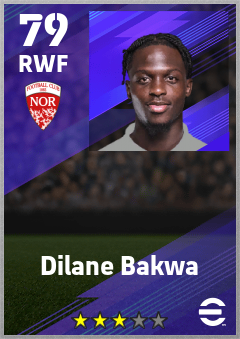 . Dilane Bakwa is a Right Wing Forward footballer from France who plays for Nottingham Rw in eFootball 2026.