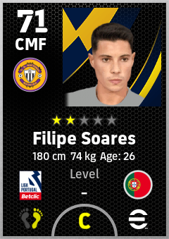. Filipe Soares is a Center Midfielder footballer from Portugal who plays for Cd Nacional in eFootball 2026.