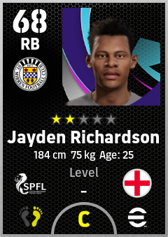 . Jayden Richardson is a Right Back footballer from England who plays for St. Mirren Fc in eFootball 2026.