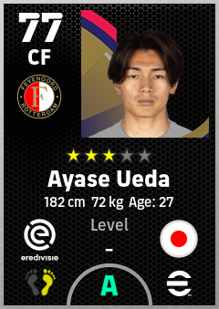 . Ayase Ueda is a Center Forward footballer from Japan who plays for Feyenoord in eFootball 2026.