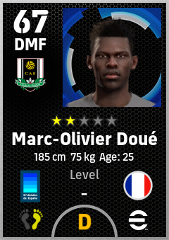 . Marc-Olivier Doué is a Defensive Midfielder footballer from France who plays for Castellón Nb in eFootball 2026.