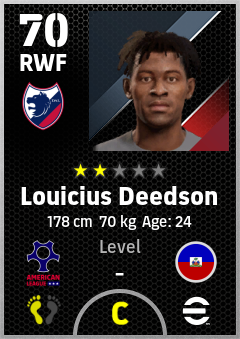. Louicius Deedson is a Right Wing Forward footballer from Haiti who plays for Dallas Rw in eFootball 2026.