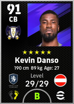 . Kevin Danso is a Center Back footballer from Austria who plays for Tottenham Wb in eFootball 2026.
