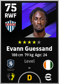 . Evann Guessand is a Right Wing Forward footballer from Côte D'ivoire who plays for Crystal Palace Rb in eFootball 2026.