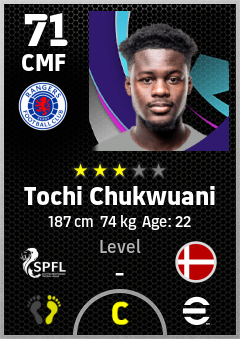 . Tochi Chukwuani is a Center Midfielder footballer from Denmark who plays for Rangers Fc in eFootball 2026.