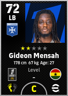 . Gideon Mensah is a Left Back footballer from Ghana who plays for Aj Auxerre in eFootball 2026.