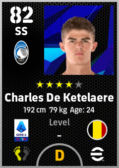 . Charles De Ketelaere is a Second Striker footballer from Belgium who plays for Atalanta Bc in eFootball 2026.