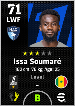 . Issa Soumaré is a Left Wing Forward footballer from Senegal who plays for Havre Ac in eFootball 2026.