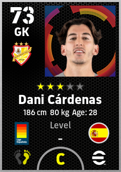 . Dani Cárdenas is a Goalkeeper footballer from Spain who plays for Vallecas Br in eFootball 2026.