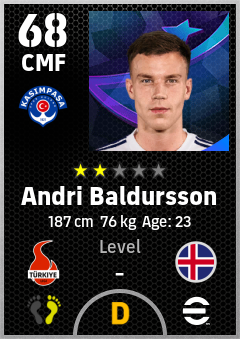 . Andri Baldursson is a Center Midfielder footballer from Iceland who plays for Kasımpaşa Sk in eFootball 2026.