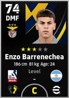 . Enzo Barrenechea is a Defensive Midfielder footballer from Argentina who plays for Sl Benfica in eFootball 2026.