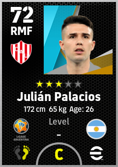. Julián Palacios is a Right Midfielder footballer from Argentina who plays for Santa Fe Rb in eFootball 2026.