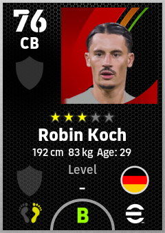 . Robin Koch is a Center Back footballer from Germany who plays for Eintracht Frankfurt in eFootball 2026.