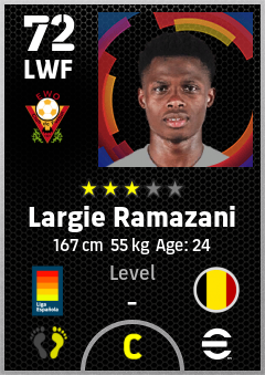 . Largie Ramazani is a Left Wing Forward footballer from Belgium who plays for Valencia Bn in eFootball 2026.