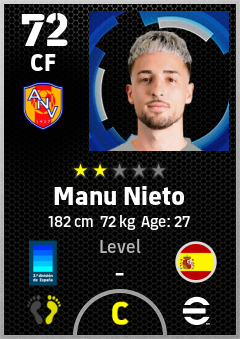 . Manu Nieto is a Center Forward footballer from Spain who plays for Andorra La Vella Aar in eFootball 2026.