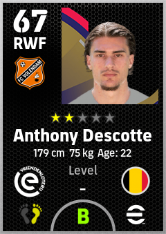 . Anthony Descotte is a Right Wing Forward footballer from Belgium who plays for Fc Volendam in eFootball 2026.