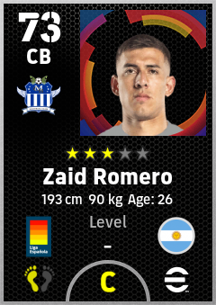 . Zaid Romero is a Center Back footballer from Argentina who plays for Getafe A in eFootball 2026.