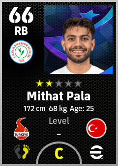. Mithat Pala is a Right Back footballer from Türkiye who plays for Çaykur Rizespor in eFootball 2026.