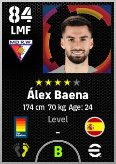 . Álex Baena is a Left Midfielder footballer from Spain who plays for Madrid Rosas Rb in eFootball 2026.