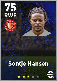 . Sontje Hansen is a Right Wing Forward footballer from Curaçao who plays for Middlesbrough Rw in eFootball 2026.