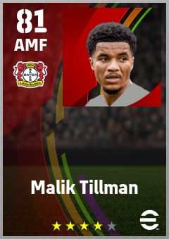 . Malik Tillman is a Attacking Midfielder footballer from United States who plays for Bayer 04 Leverkusen in eFootball 2026.