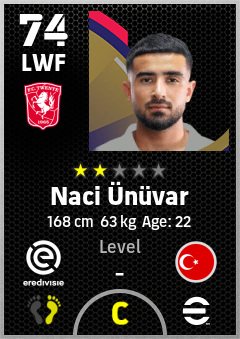 . Naci Ünüvar is a Left Wing Forward footballer from Türkiye who plays for Fc Twente in eFootball 2026.