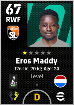 . Eros Maddy is a Right Wing Forward footballer from Netherlands who plays for Stade Lavallois Mfc in eFootball 2026.