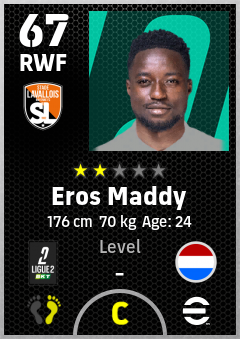 . Eros Maddy is a Right Wing Forward footballer from Netherlands who plays for Stade Lavallois Mfc in eFootball 2026.