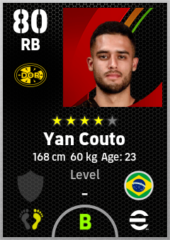 . Yan Couto is a Right Back footballer from Brazil who plays for Borussia Dortmund in eFootball 2026.