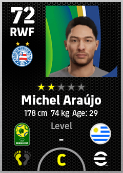 . Michel Araújo is a Right Wing Forward footballer from Uruguay who plays for Ec Bahia in eFootball 2026.