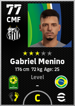 . Gabriel Menino is a Center Midfielder footballer from Brazil who plays for Santos Fc in eFootball 2026.