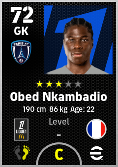 . Obed Nkambadio is a Goalkeeper footballer from France who plays for Paris Fc in eFootball 2026.