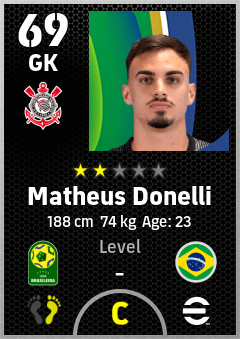 . Matheus Donelli is a Goalkeeper footballer from Brazil who plays for Sc Corinthians Paulista in eFootball 2026.