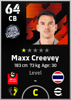 . Maxx Creevey is a Center Back footballer from Thailand who plays for Rayong Fc in eFootball 2026.