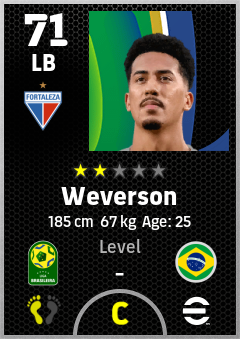 . Weverson is a Left Back footballer from Brazil who plays for Fortaleza Ec in eFootball 2026.